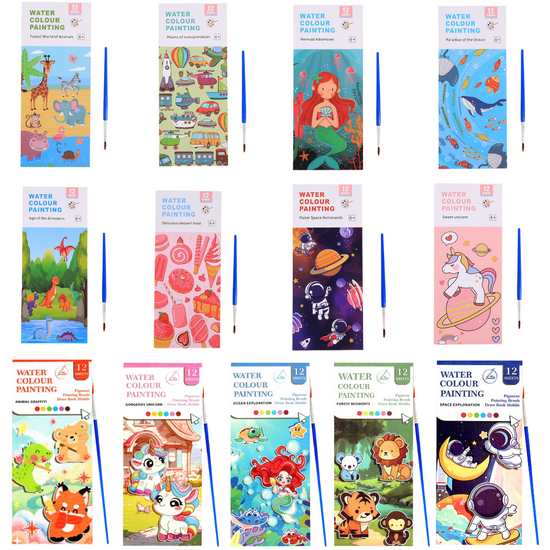 Bring vibrant imagination to life with our 12-Page Watercolor Painting Book + Brush set! Perfect for little artists, this all-in-one kit turns every moment into a colorful adventure. Mess-free, easy to use, and full of fun — it’s the ideal creative companion for kids at home, school, or parties!