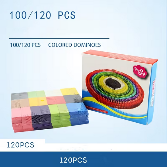 120-Piece Wooden Colored Domino Set – Educational Building Blocks & Stacking Toy