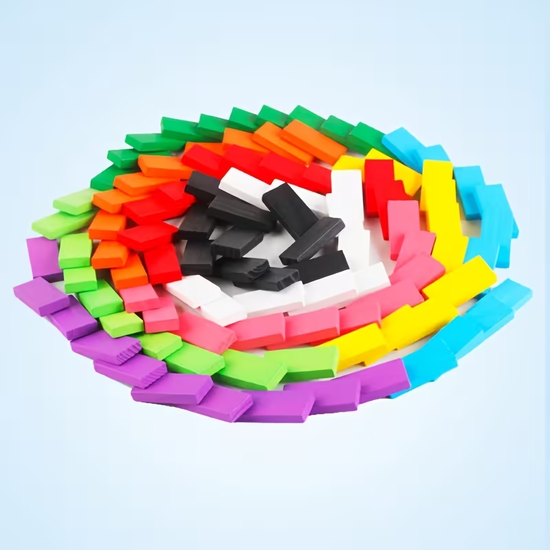 🏗️ Creative Construction: Encourages engineering skills as kids design domino runs, chain reactions, and unique structures.