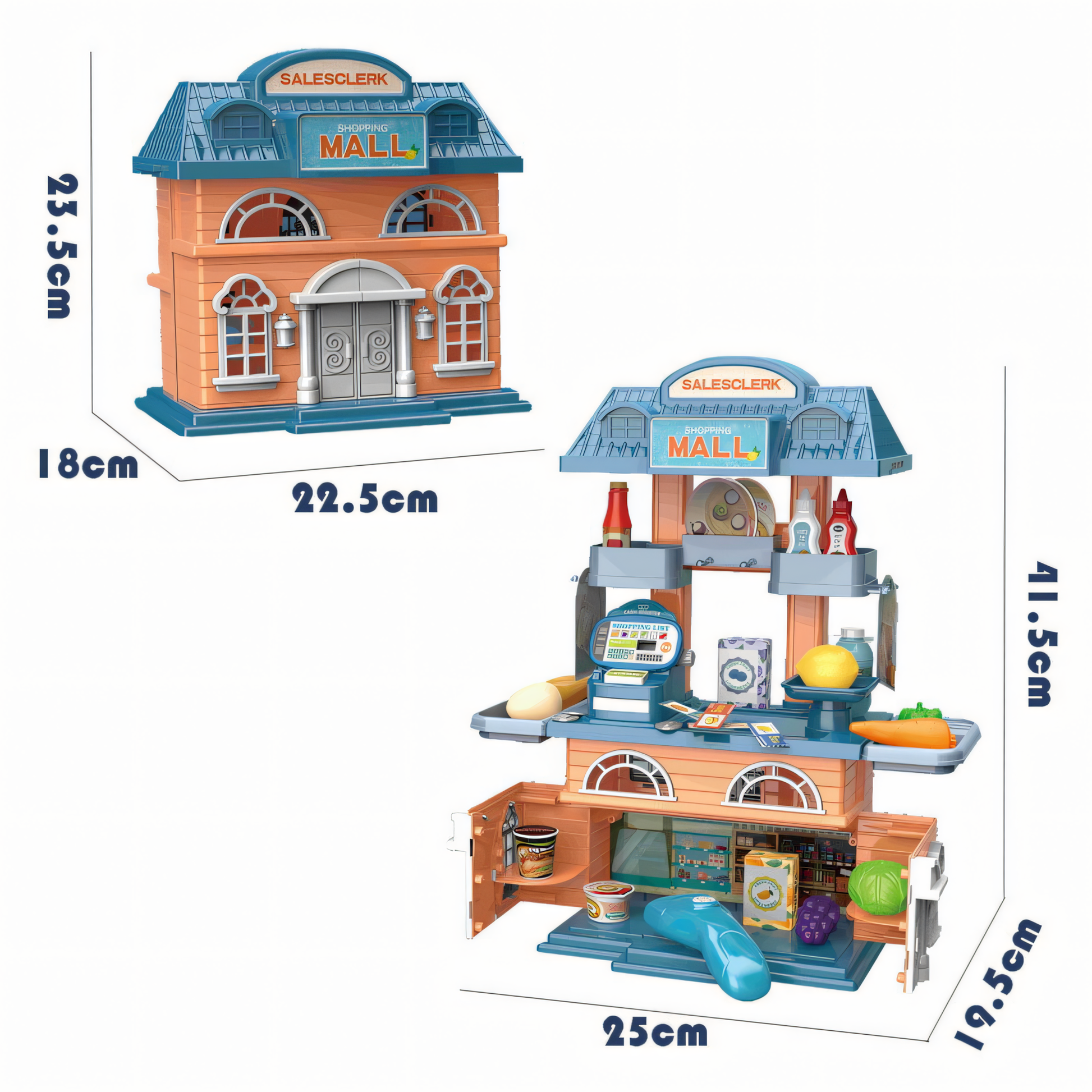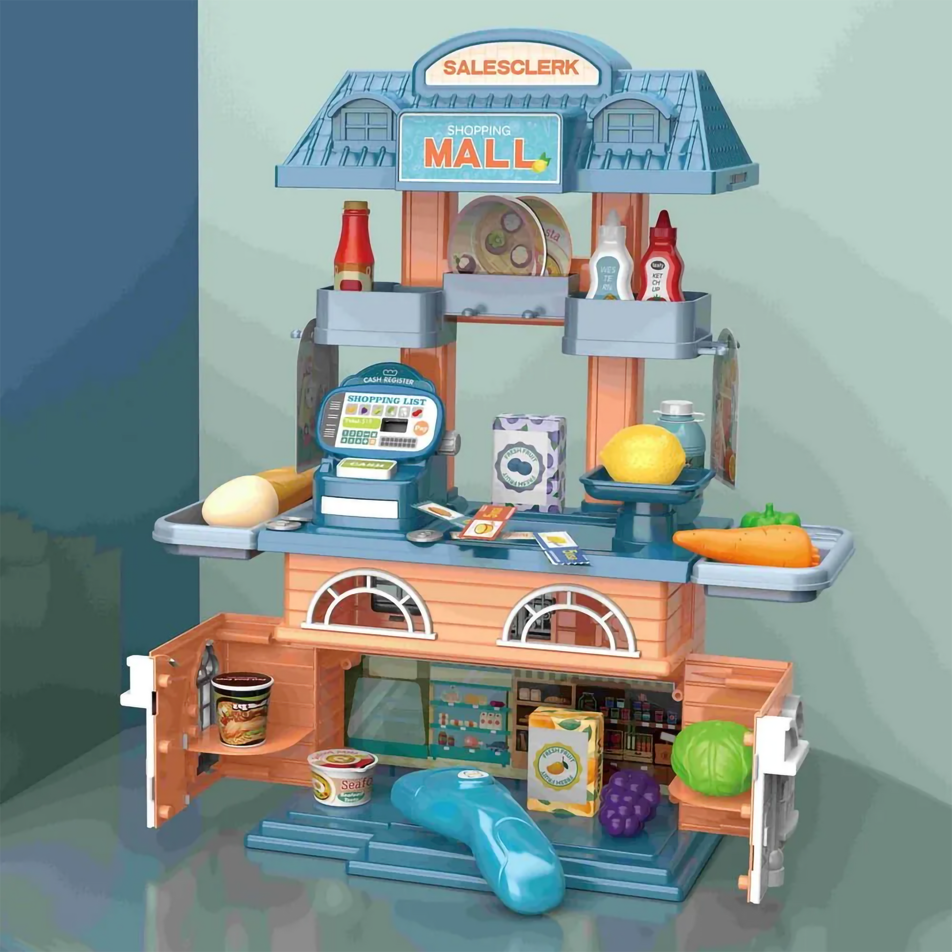 🏪 Interactive Role-Play: Features a "Salesclerk" station and "Shopping Mall" signage, perfect for simulating cashier and shopper scenarios.