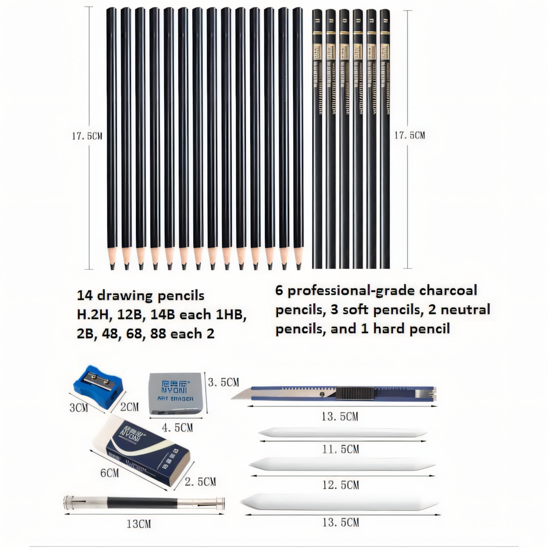 29-Piece Comprehensive Set: Includes a variety of pencils and essential drawing tools for all sketching needs.