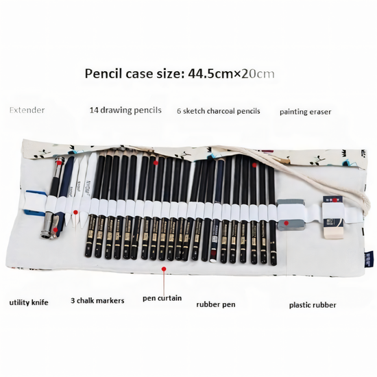 Package Includes: 1 x 29-Piece Sketch and Drawing Pencil Set in Roll-Up Canvas Pouch