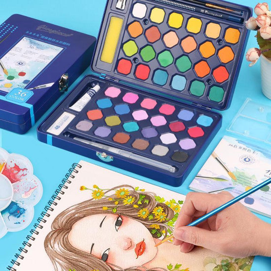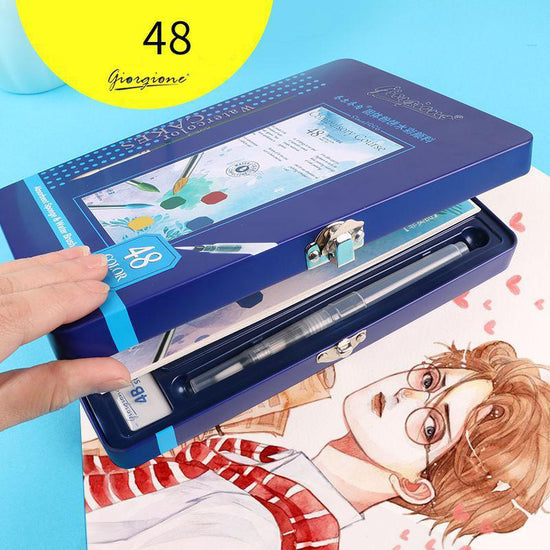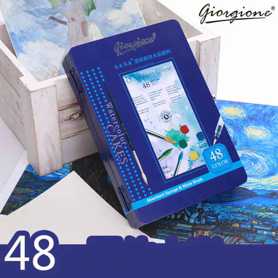 Unlock a spectrum of artistic possibilities with the Giorgione 48-Color Solid Watercolor Paint Set, a comprehensive and portable kit perfect for artists of all levels. This premium watercolor set features 48 vibrant, highly pigmented solid watercolor cakes that offer smooth application and rich, blendable colors. Housed in a durable metal tin, this set includes everything you need to start painting immediately: a selection of watercolor papers, a water-absorbing sponge, a versatile nylon brush pen, a carbide pencil for sketching, a convenient water brush pen for controlled washes, a white pigment for highlights, a pencil sharpener, and an eraser. Whether you're a beginner exploring the world of watercolors or a seasoned artist on the go, this set provides exceptional quality and convenience for creating stunning artworks anywhere!