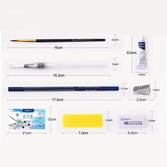 Comprehensive Art Kit: Includes essential accessories such as watercolor papers, an absorbent sponge, nylon brush pen, carbide pencil, water brush pen, white pigment, pencil sharpener, and eraser.