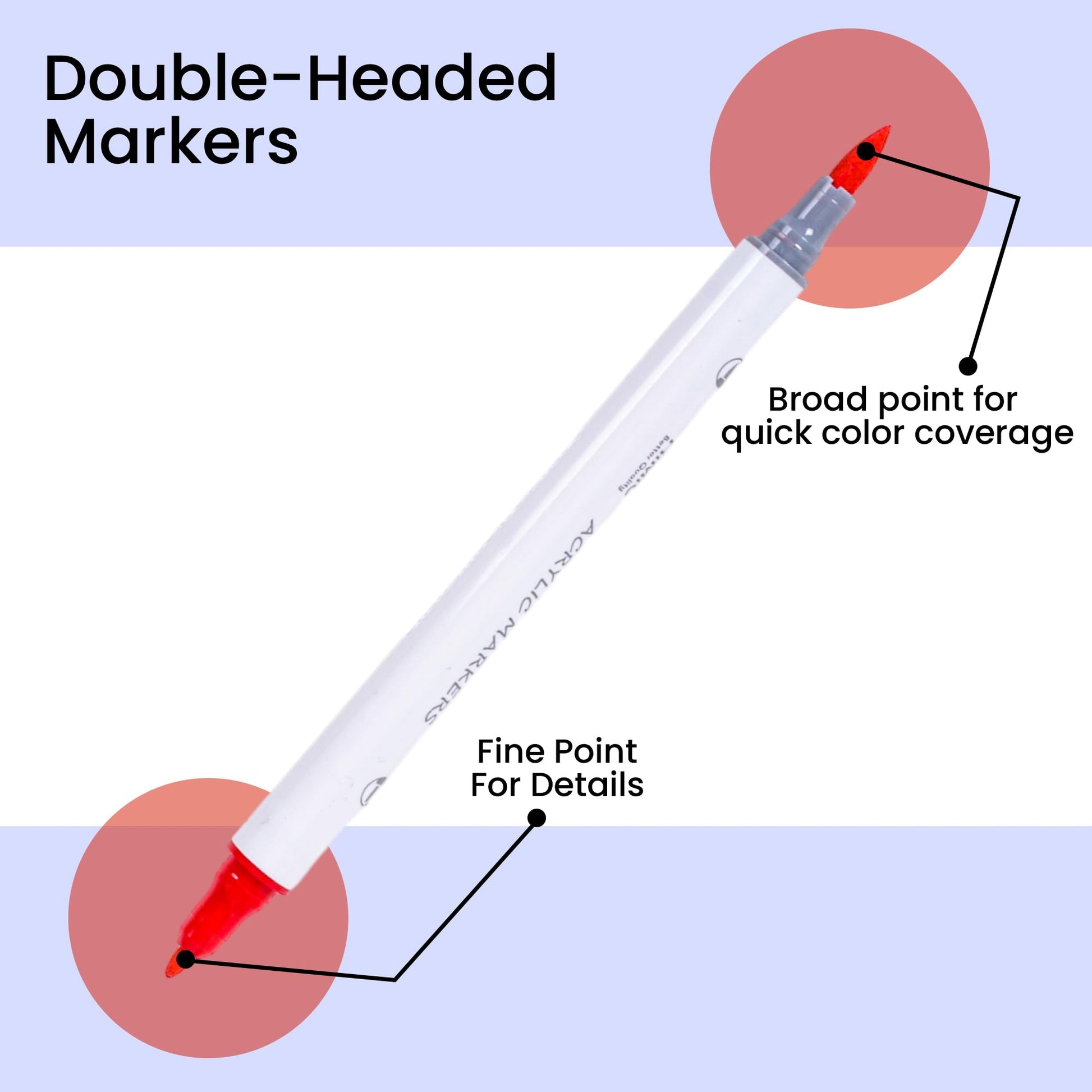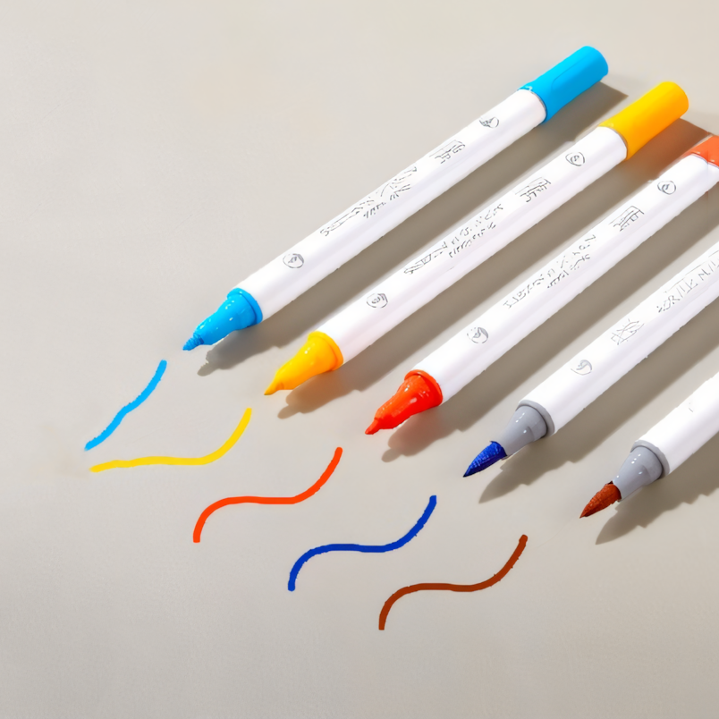 Dual Tips (Brush & Fine): Features a soft brush head for broad strokes and a fine tip for detailed work and outlining, offering versatility for various artistic styles.
