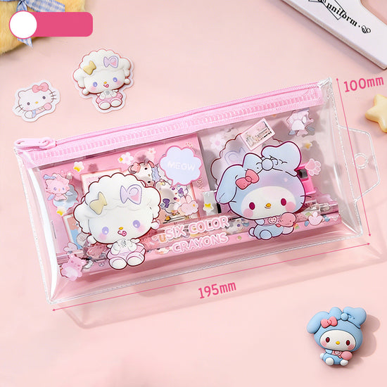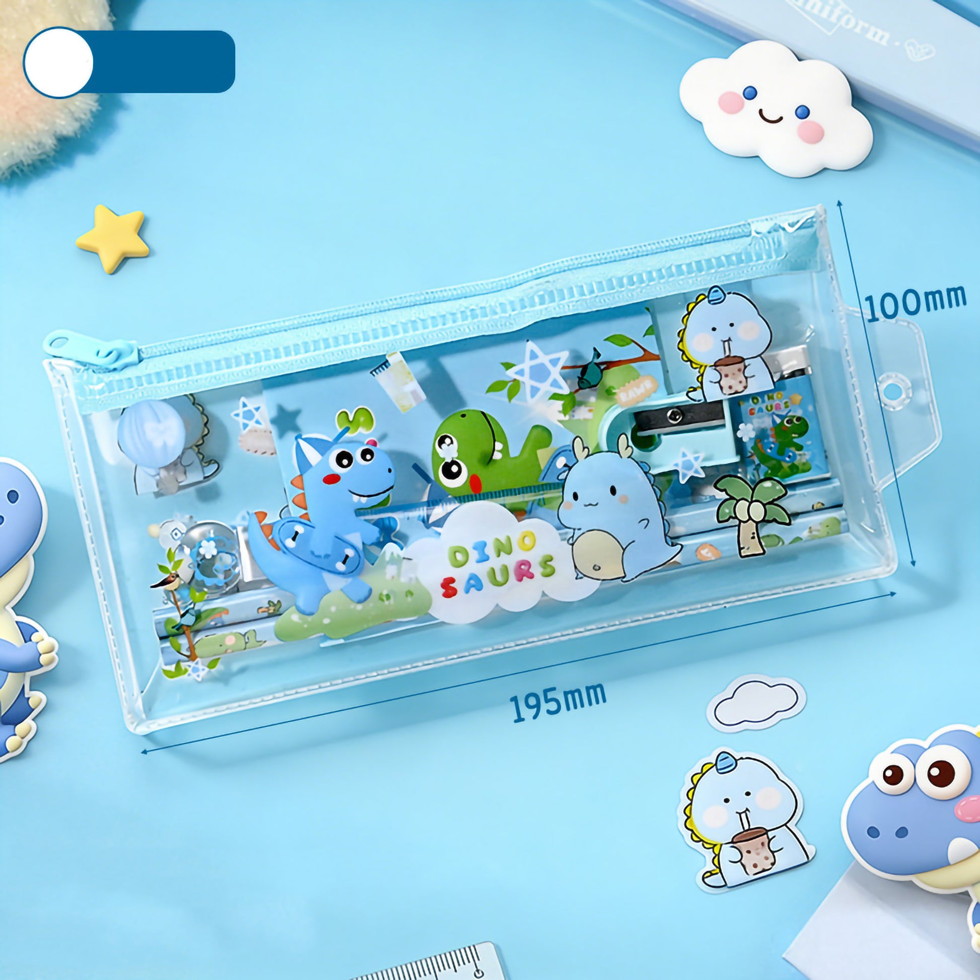 6-Piece Cute Kids Stationery Set with Clear Zipper Pouch