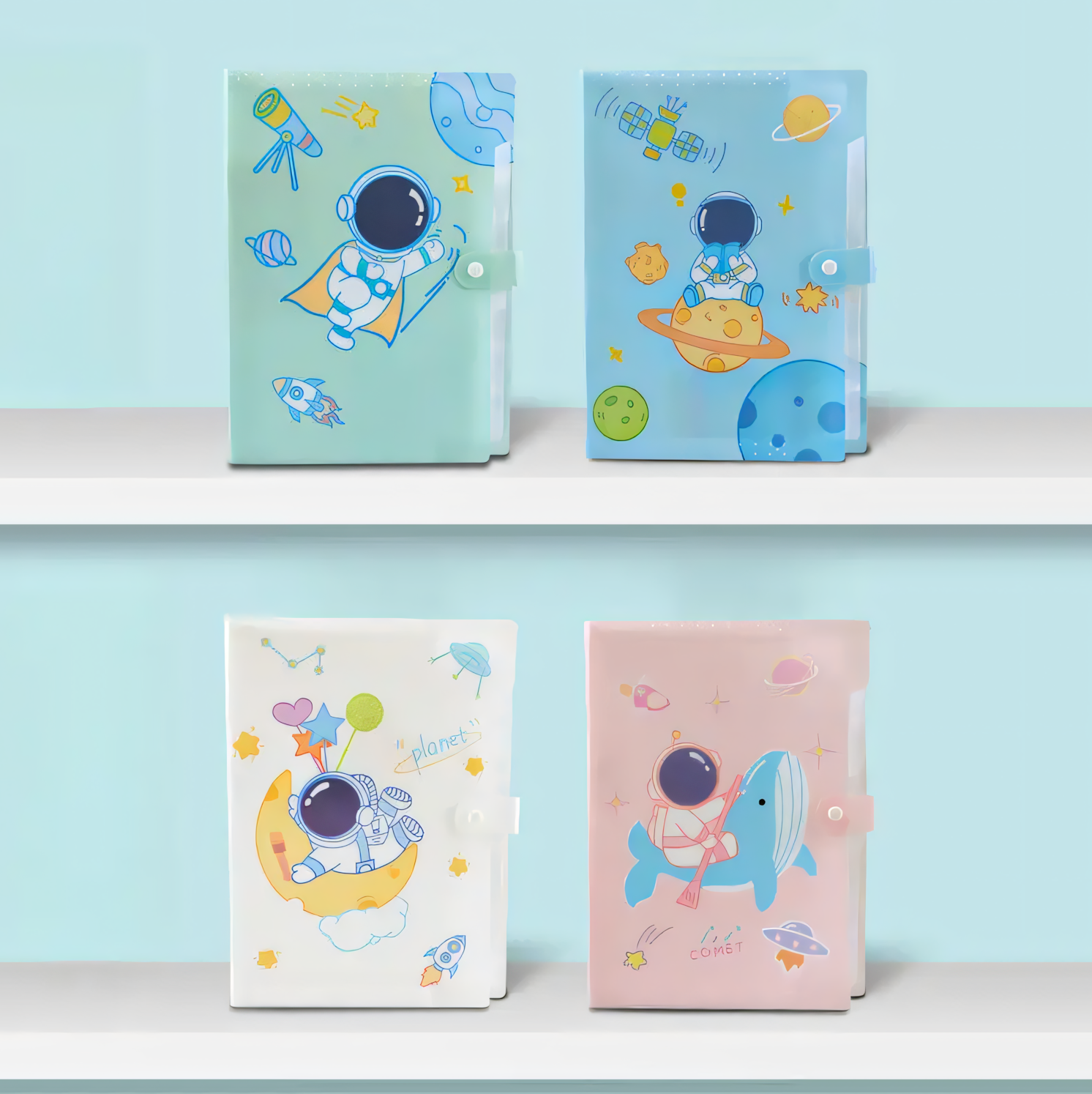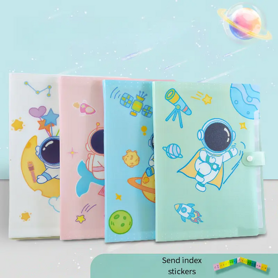 Package Contain: 1 x A4 Space Exploration File Folder + 16pcs Index Stickers