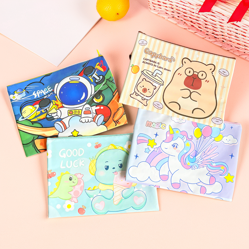 A4 Zipper Folder Bag – Cute & Durable Organizer Space, Dino, Unicorn & Capybara