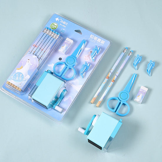 All-in-One Stationery Set with 6 Pretty Pencils + Manual Sharpener & More