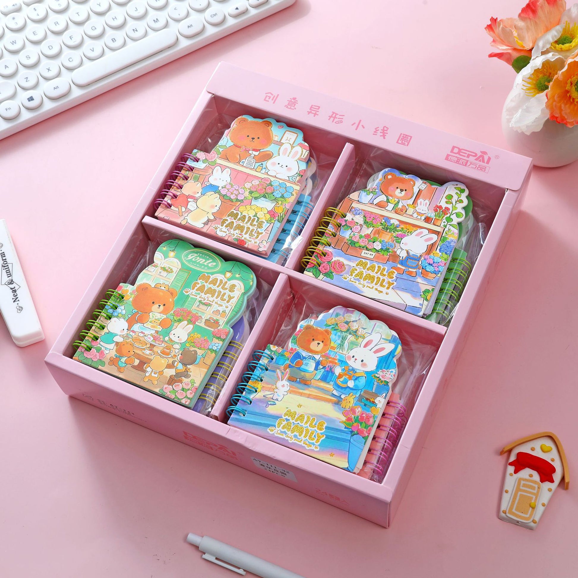 Make every note adorable with these Cute Bear & Bunny Die-Cut Spiral Notebooks! Featuring vibrant, cartoon-themed covers with unique shaped edges, these pocket diaries bring a pop of fun to schoolwork, to-do lists, and doodling. The compact design, combined with charming illustrations and premium gold accents, makes this an irresistible addition to any stationery collection—perfect for journaling on the go.