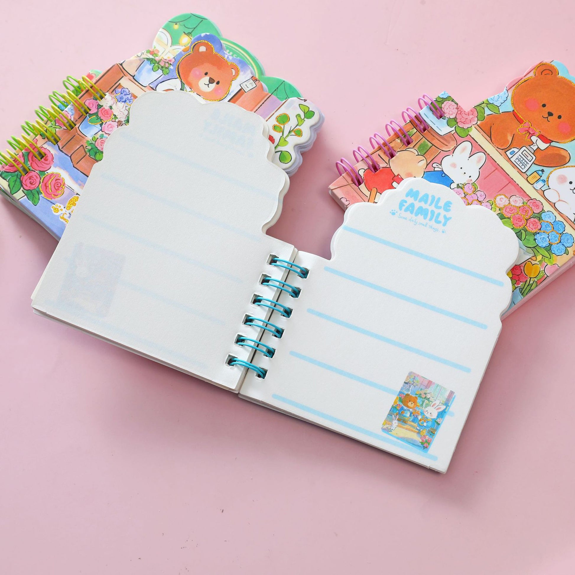 🐻 Unique Die-Cut Shape: Unlike standard square pads, the cover and pages are cut to follow the cute contour of the bear and bunny characters.