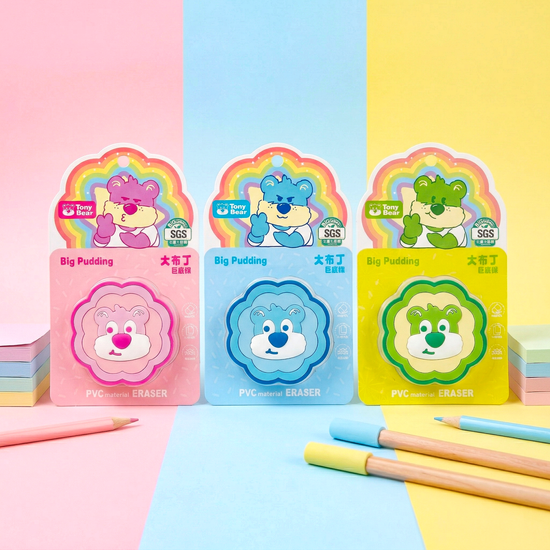 Add a touch of "Big Pudding" sweetness to your study desk with our Tony Bear Lion Erasers! These oversized, high-quality erasers feature the lovable Tony Bear character in a charming lion-maned design. Crafted from premium PVC material, they offer a satisfyingly smooth and smudge-free erasing experience, making them as functional as they are adorable.