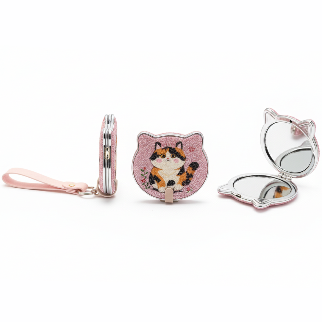 Add a touch of sparkle to your everyday essentials with the Bling Kitty Pocket Size Mirror. Stylish, compact, and oh-so-cute, this mirror is designed to slip effortlessly into your purse, handbag, or even your pocket. With its adorable kitty design and dazzling bling finish, it’s both functional and fashionable — perfect for quick touch-ups anytime, anywhere!