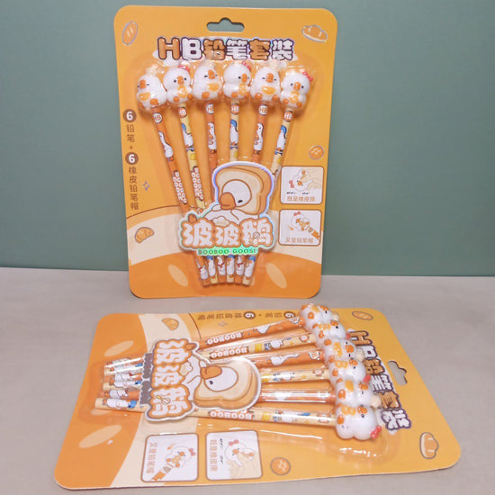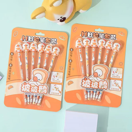 Make schoolwork a delightful adventure with the "Booboo's Besties" Happy Kids' Pencil Party set! This kawaii 6-piece wooden HB pencil set features magical 3D Booboo Goose toppers that cleverly double as both protective pencil caps and functional erasers. Perfect for little hands that love to draw, write, and doodle, these fun bakery-themed pencils will instantly brighten up any child's daily stationery collection.