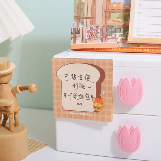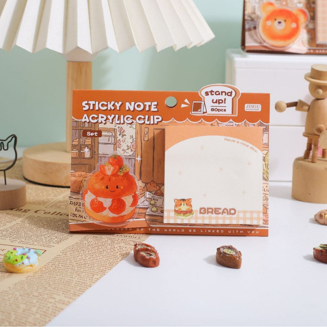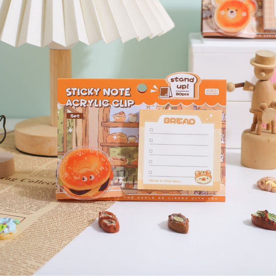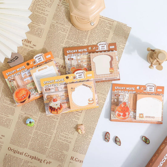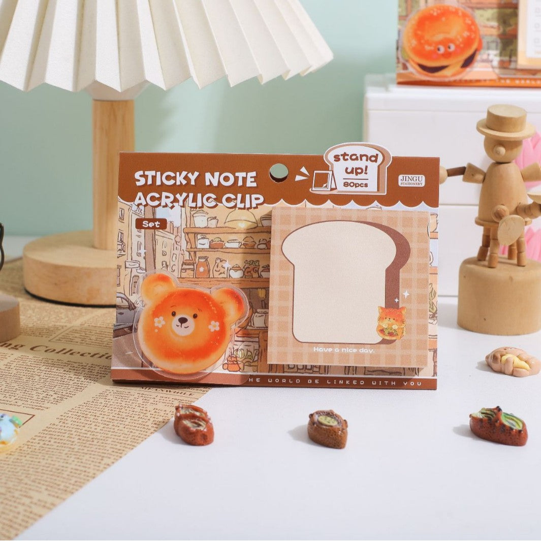 🍞 Cute Bread & Bear Theme – Adorable kawaii bakery-style sticky notes with matching 3D acrylic clips.