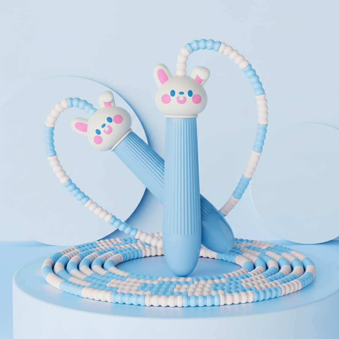Featuring cute bunny-ear handles and pastel beaded ropes, this skipping rope is designed for kids who love to move, laugh, and play. Available in charming Blue Bunny and Sweet Pink Bunny colors, it’s a perfect blend of fitness, fun, and cuteness — keeping little ones healthy and happy!