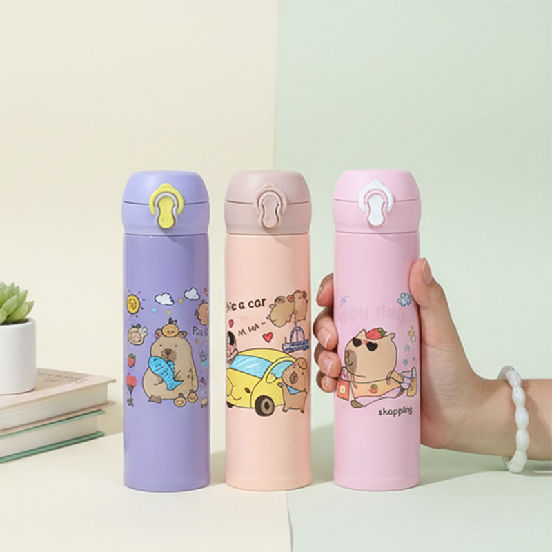 Make every sip fun and adorable with the Cute Capybara Stainless Steel Thermos Bottle for Kids 💕🐾. Featuring charming capybara-themed prints in soft pastel shades, this insulated bottle keeps drinks hot or cold for hours while adding a dose of cuteness to your child’s day. Perfect for school, picnics, or travel, it’s safe, durable, and designed for little hands — blending style and function beautifully!