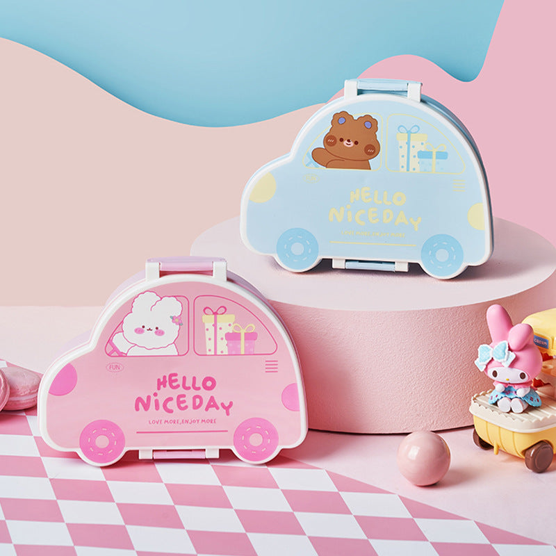 Package Includes: 1 × Car Shape Lunch Box + Spoon + Fork
