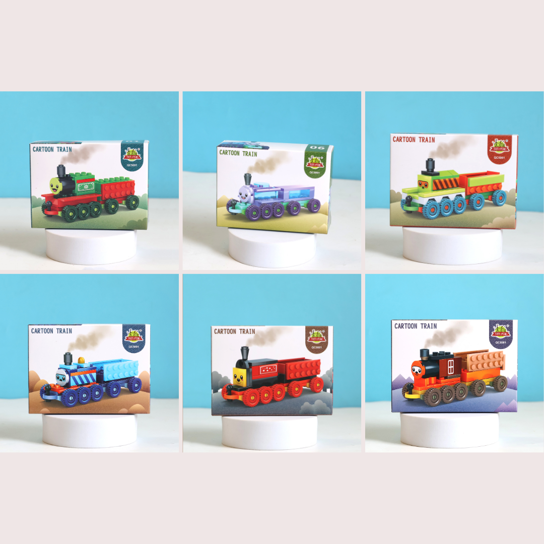 - Package Includes: 1 x Cartoon Train DIY Building Block Toy (Random design)