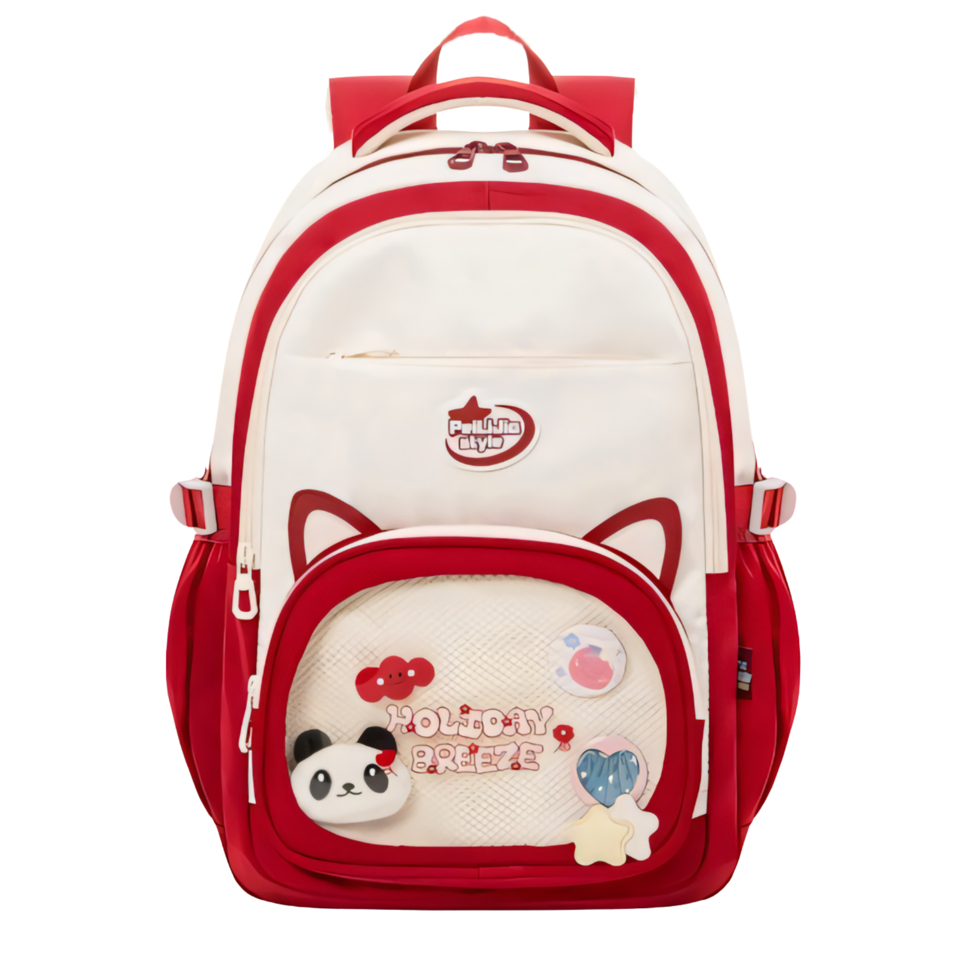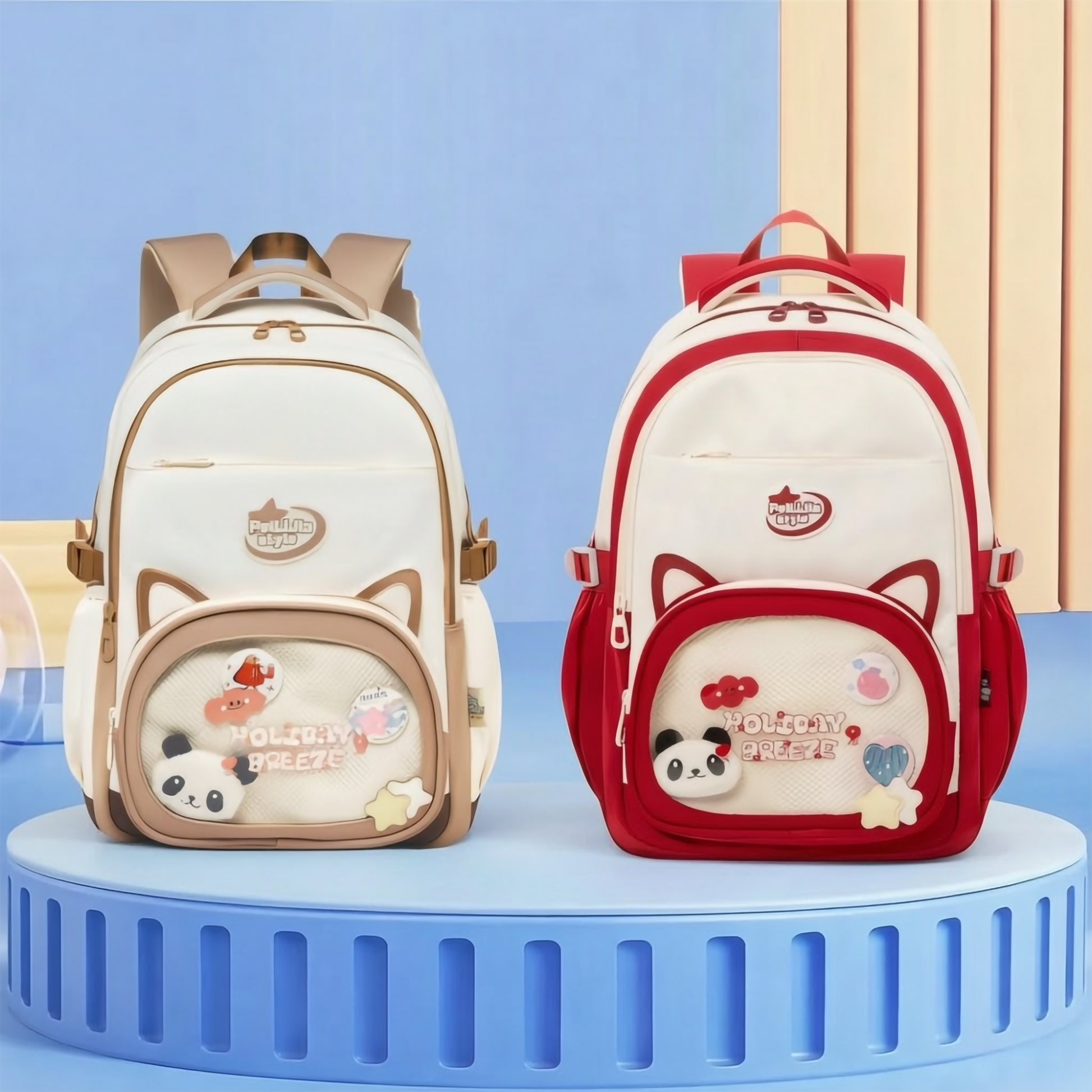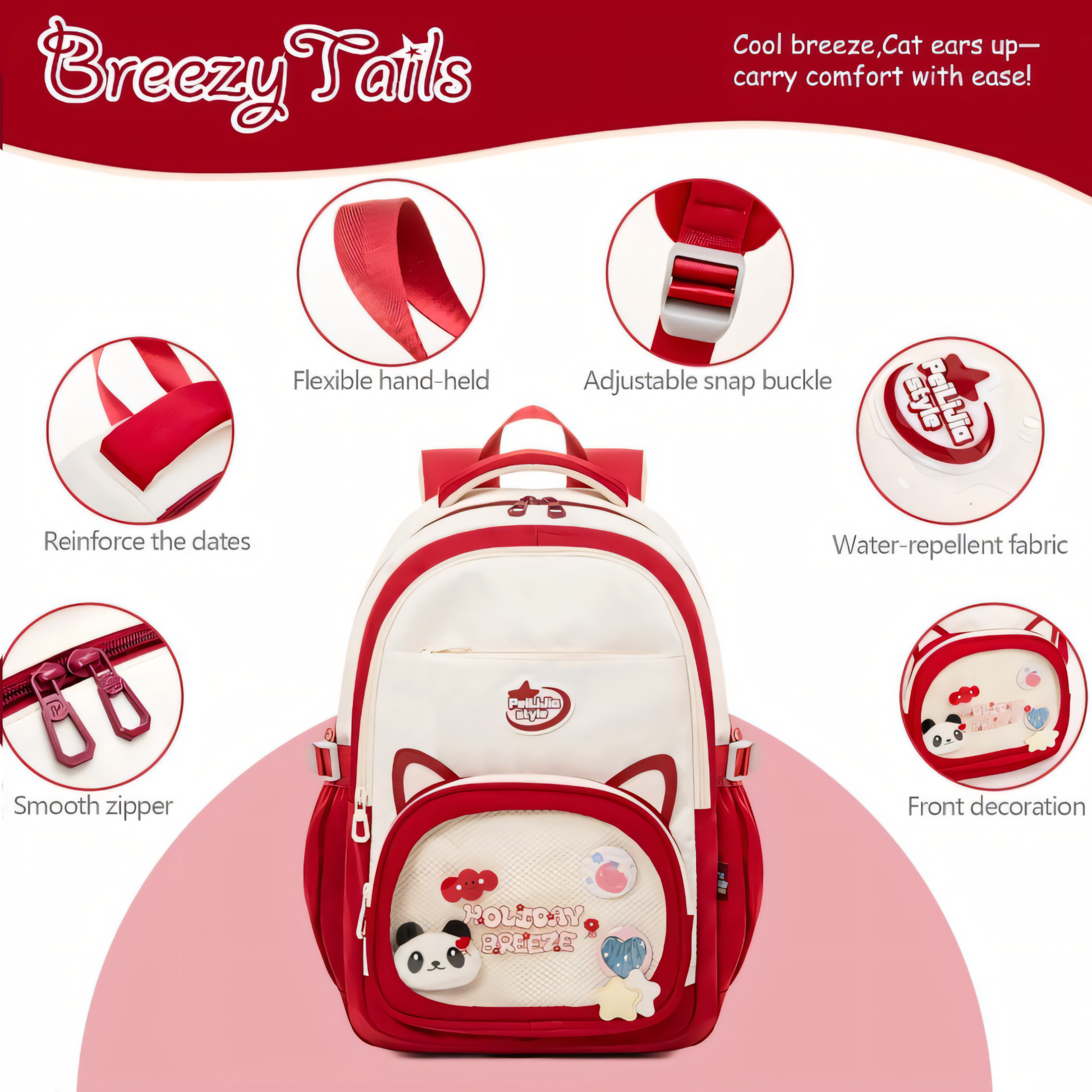 🐱 Cute Cat Ear Design: Adorable front styling with a mesh pocket and fun "Holiday Breeze" panda badges.