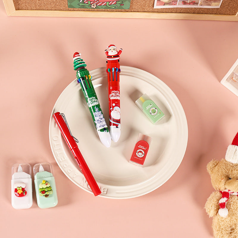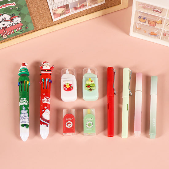 Comes with a Christmas-themed mini corrector or eraser—compact, easy to carry, and perfect for school or office.