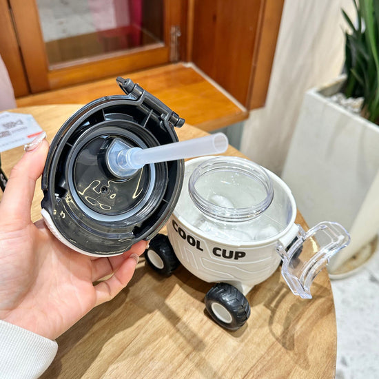Rev up your little one's hydration routine with the ultimate Cool Cup! Designed to spark joy, this innovative water bottle doubles as a fun, rolling toy vehicle that keeps kids entertained while they drink. With its futuristic design, real moving wheels, and easy-to-carry strap, it turns ordinary water breaks into an exciting playtime adventure, ensuring your child stays happy and hydrated all day long.