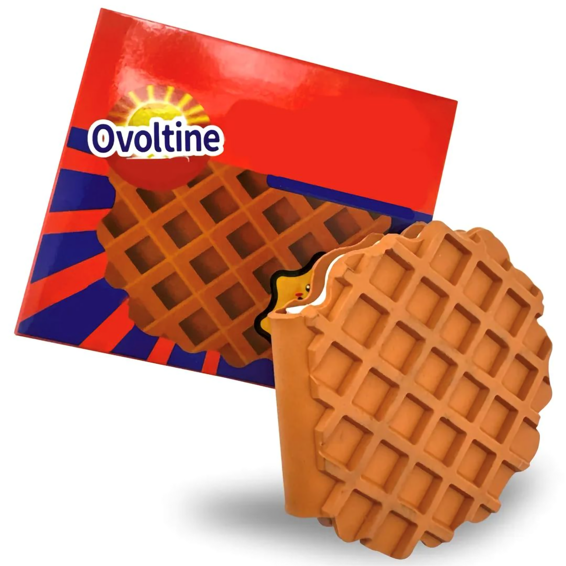 🧇 Fun Waffle Shape: Features a unique die-cut shape that looks just like a round golden-brown waffle or sandwich biscuit.