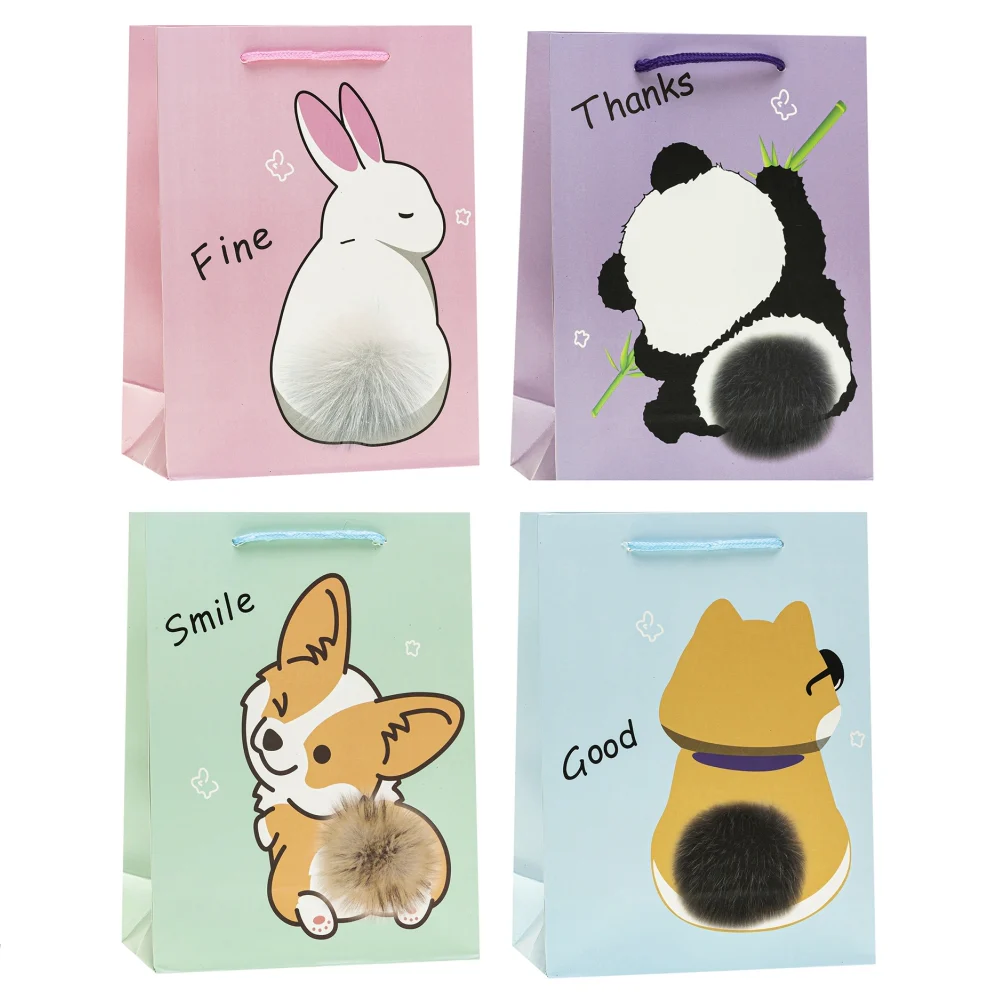 🐻🐰 Cute Animal Furr Tail Paper Gift Bag – Cute and stylish bags to carry all goodies in charm.