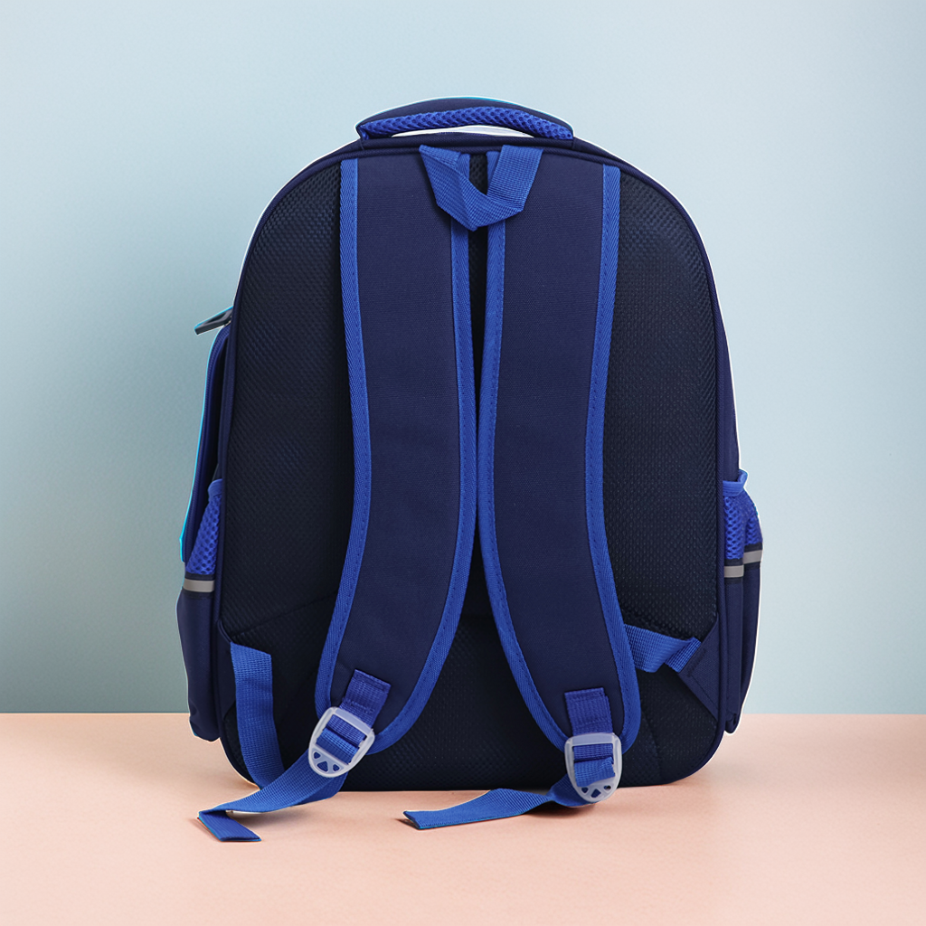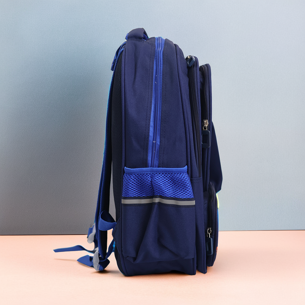 Made from high-quality materials, this backpack is both durable and comfortable to wear. It includes a spacious main compartment and a front pocket, providing ample space for storing books, lunchboxes, water bottles, and other essentials. The backpack also features two side pockets, perfect for holding snacks or small items.