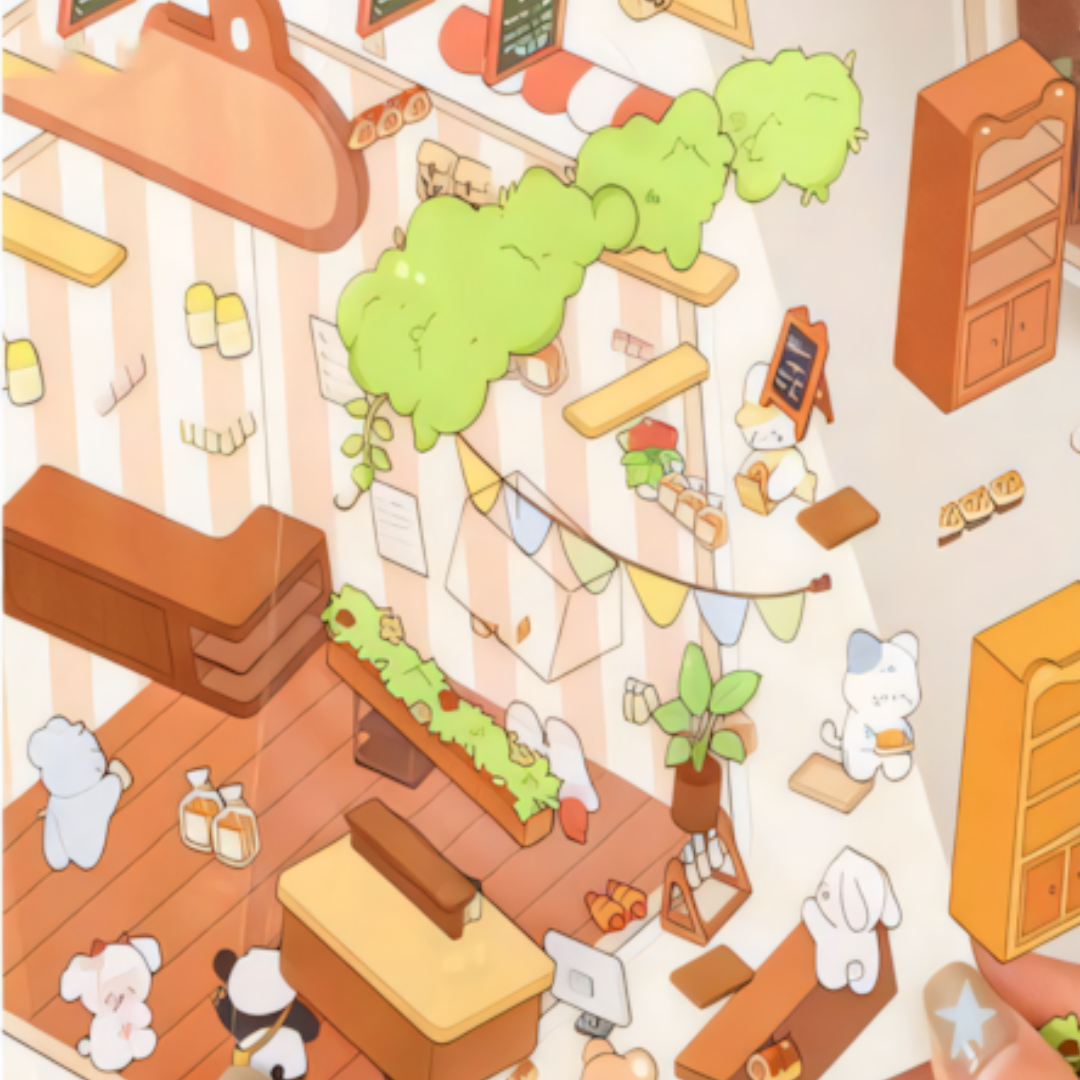 🏡 Diverse Themed Sets: Explore different settings like cozy cafes, bustling shops, and serene landscapes (as depicted in the image), offering endless storytelling possibilities.