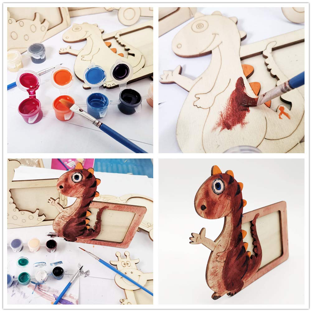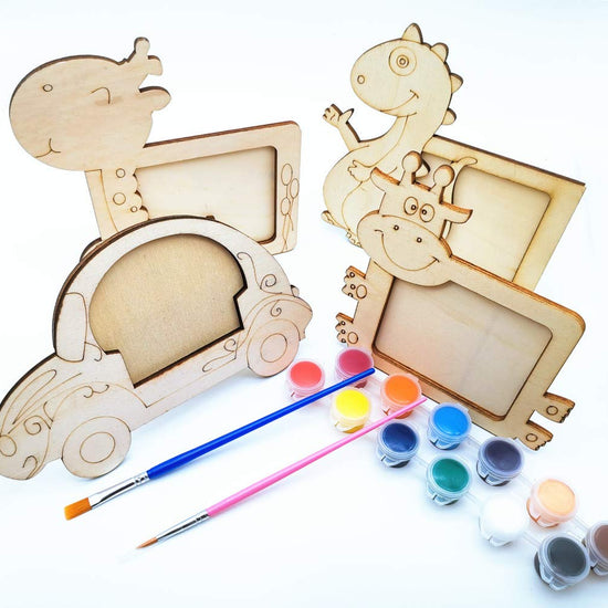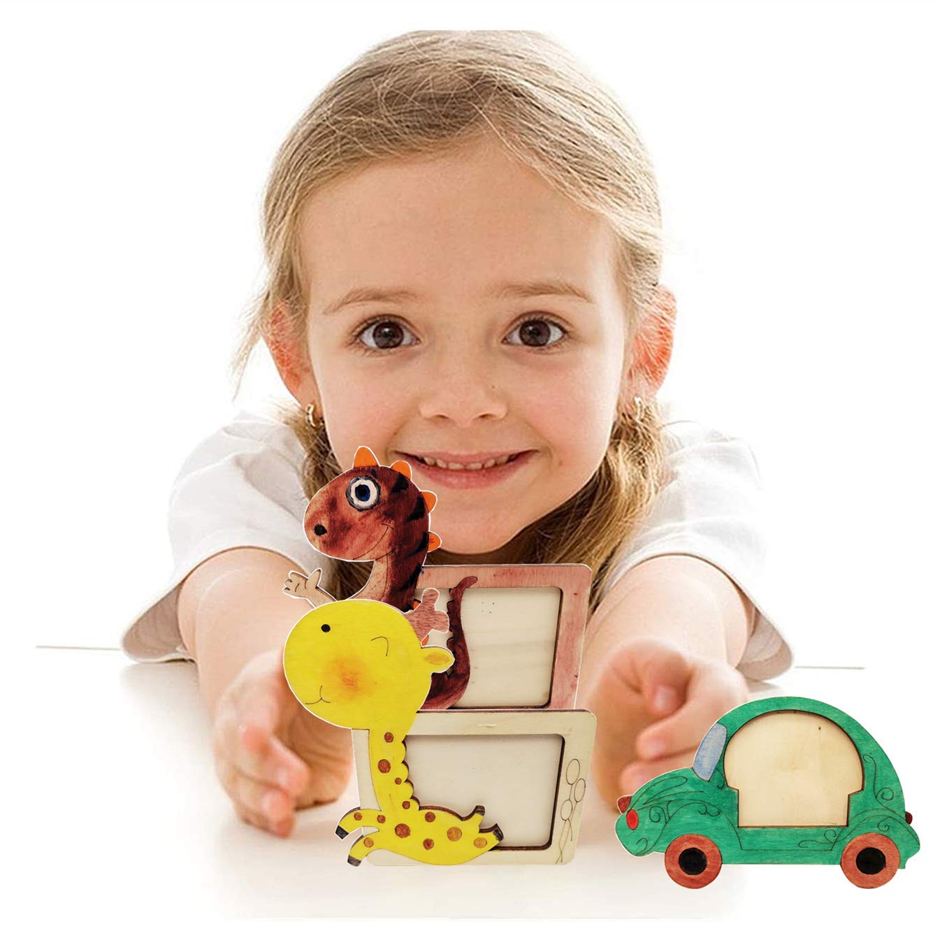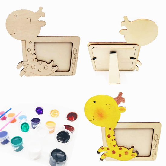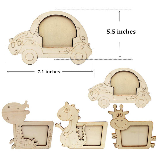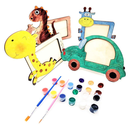 🖼️ Customizable Wooden Frames: Features unique wooden frames in fun shapes like a playful giraffe, an adventurous dinosaur, a cool car, and more, ready for personal artistic touches.