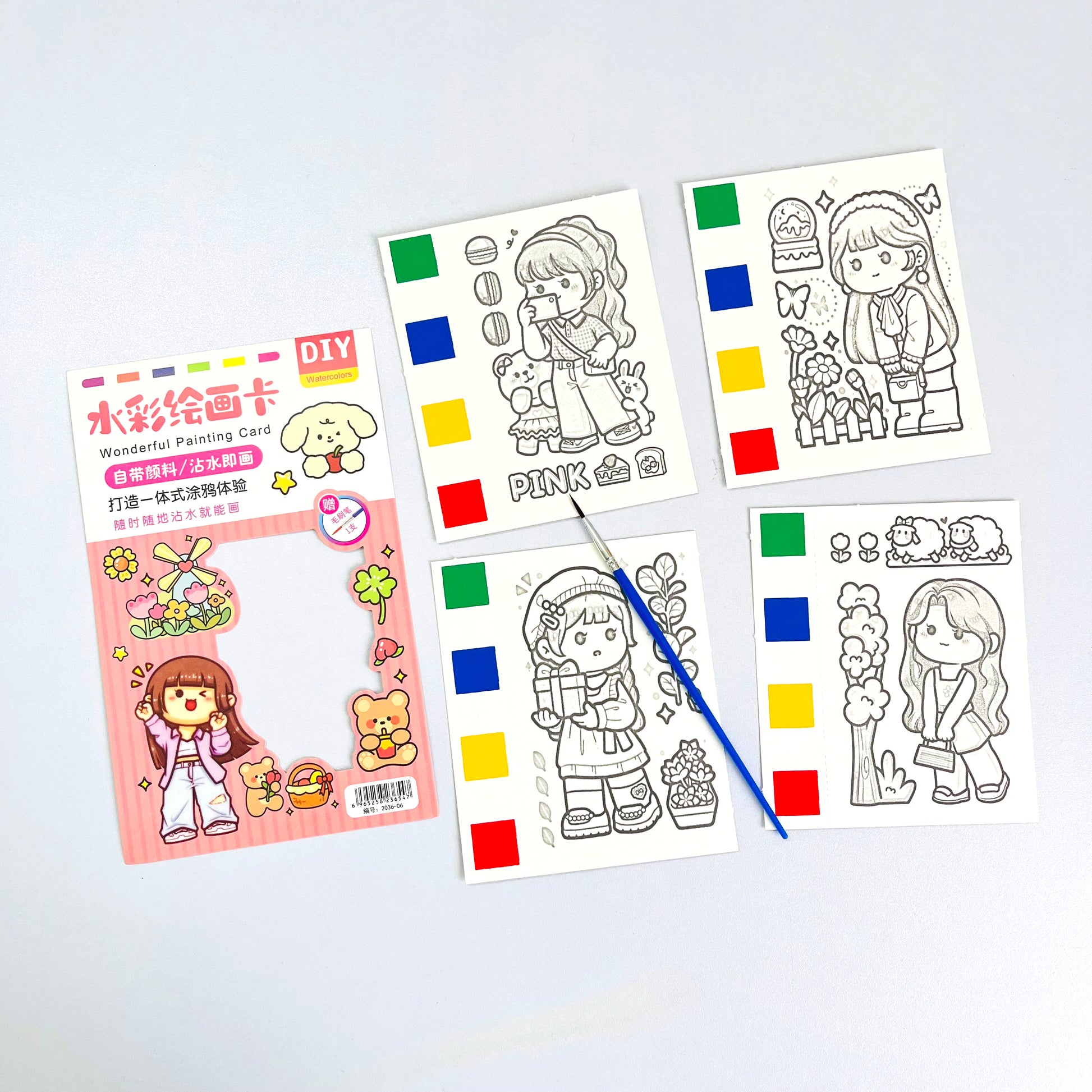 DIY Watercolor Pre-Printed Painting Cards with Brush