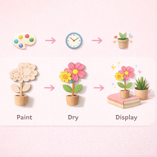 Unleash your child's inner artist with our DIY Wooden Flower Painting Kit. This all-in-one craft set features beautifully smooth wooden flower cutouts ready to be brought to life with a splash of color. It is the perfect screen-free activity that encourages creativity, improves fine motor skills, and results in a charming handmade decor piece!