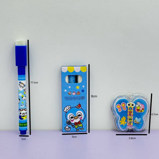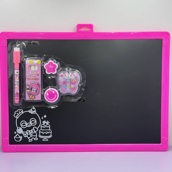 This adorable and educational set comes with a mini whiteboard, colorful markers, erasers, and magnetic accessories — all neatly packed in a vibrant cartoon-themed design. Perfect for practice, play, and creativity, it’s the ideal companion for every child’s learning journey — at home or on the go!
