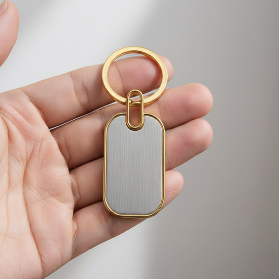 Premium Dual-Tone Metal Keychain – Gold & Silver Blank Keyring for Engraving & Branding