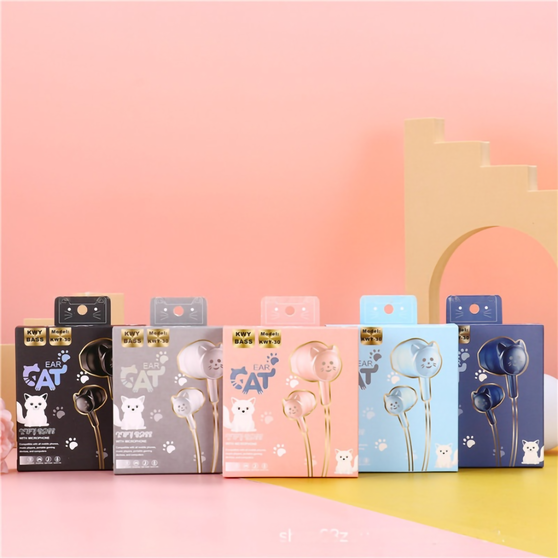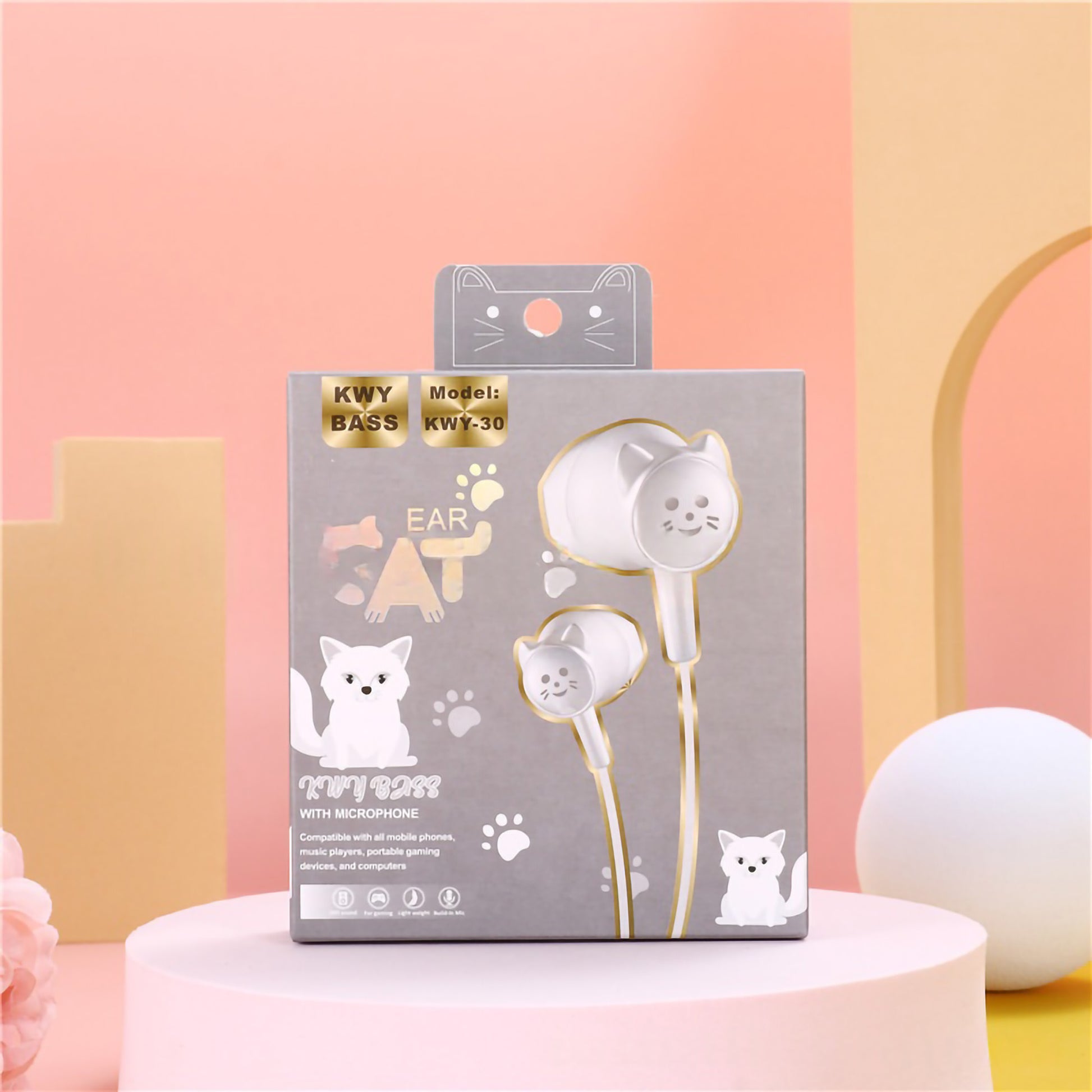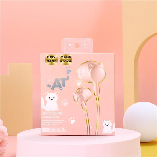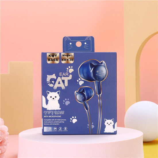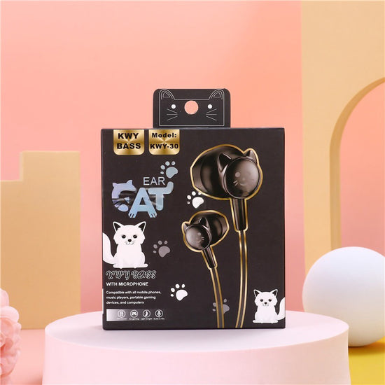 Add a touch of feline fun to your daily playlist with these adorable "Ear Cat" in-ear headphones! Uniquely designed with 3D cat-shaped earbuds, these wired earphones combine kawaii style with great audio performance. Featuring "KWY Bass" technology for rich sound and a built-in microphone for hands-free calls, they are the perfect accessory for music lovers who want to stand out from the crowd.