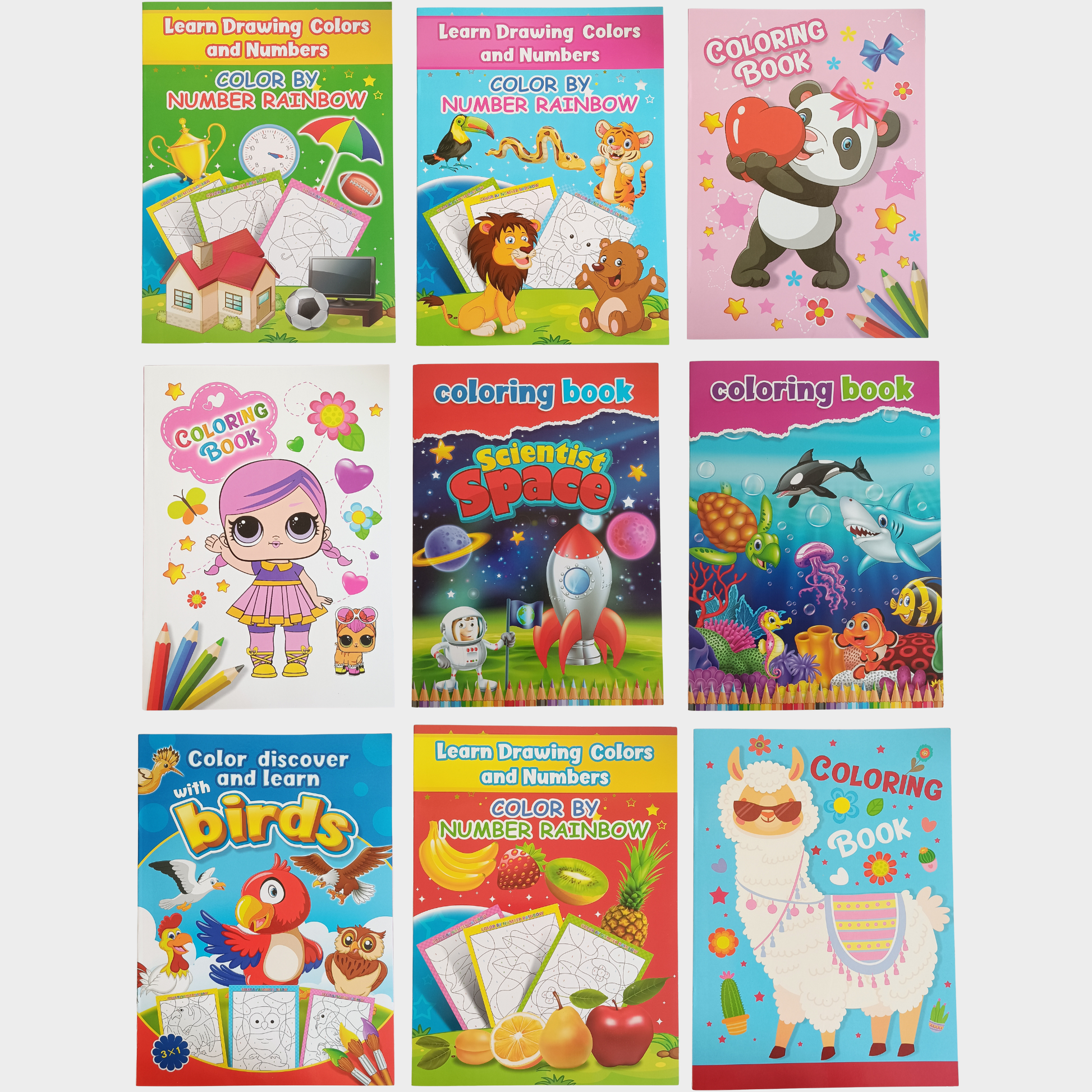 Spark creativity and learning with this vibrant collection of Assorted Coloring Books! Designed to capture the imagination of young artists, these books cover a wide range of exciting themes—from outer space adventures and underwater worlds to cute animals and delicious fruits. Many of the books also feature educational elements like "Color by Number," helping kids learn colors and numbers while they paint and play.