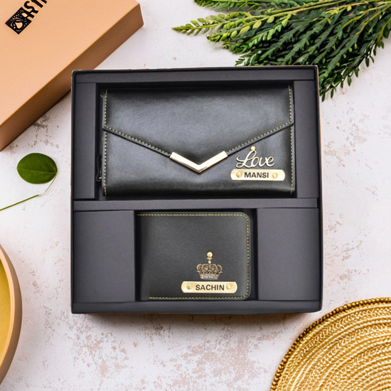 This premium set includes a sophisticated Ladies Clutch and a sleek Men's Wallet, combining elegance and practicality in one thoughtful package.