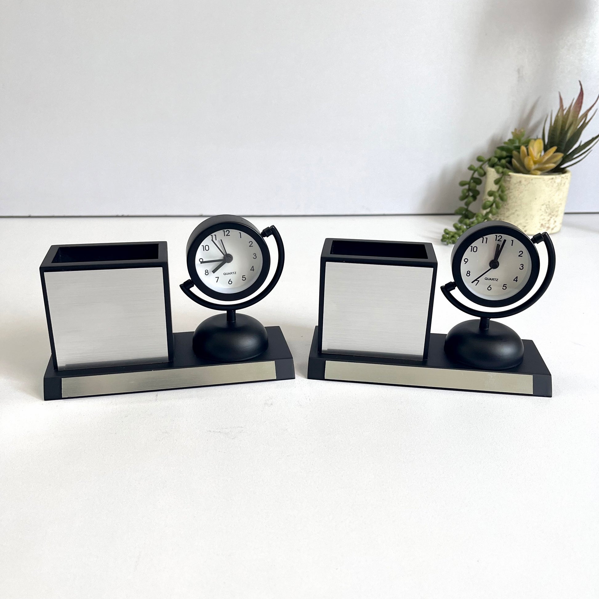 - Package Includes: 1 x Elite Desk Companion – Personalized Clock Pen Stand