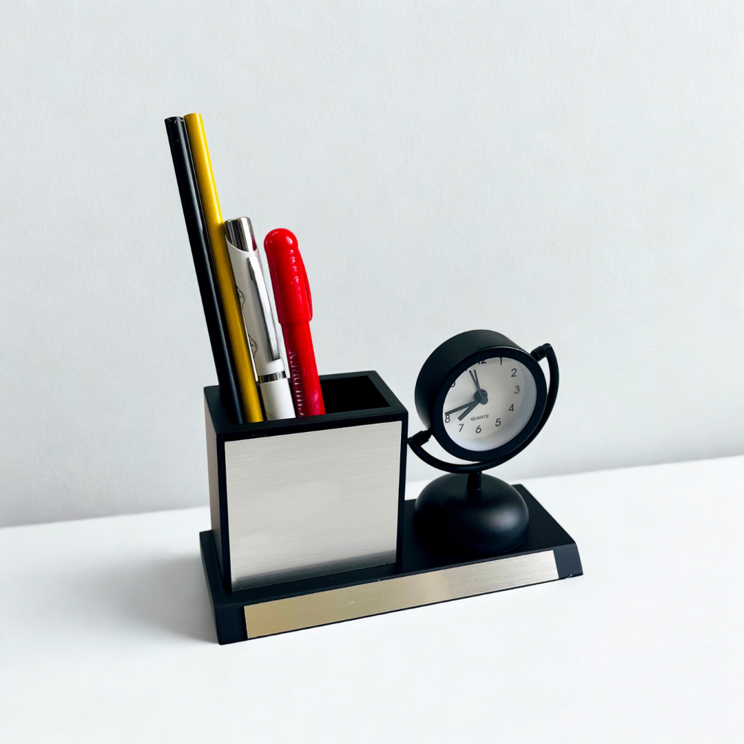 Elite Desk Companion – Personalized Clock Pen Stand