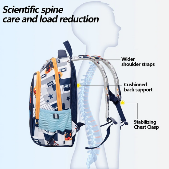 🧒 Scientific Spine Care: Features a dorsal spine protection system with cushioned back support to reduce load.