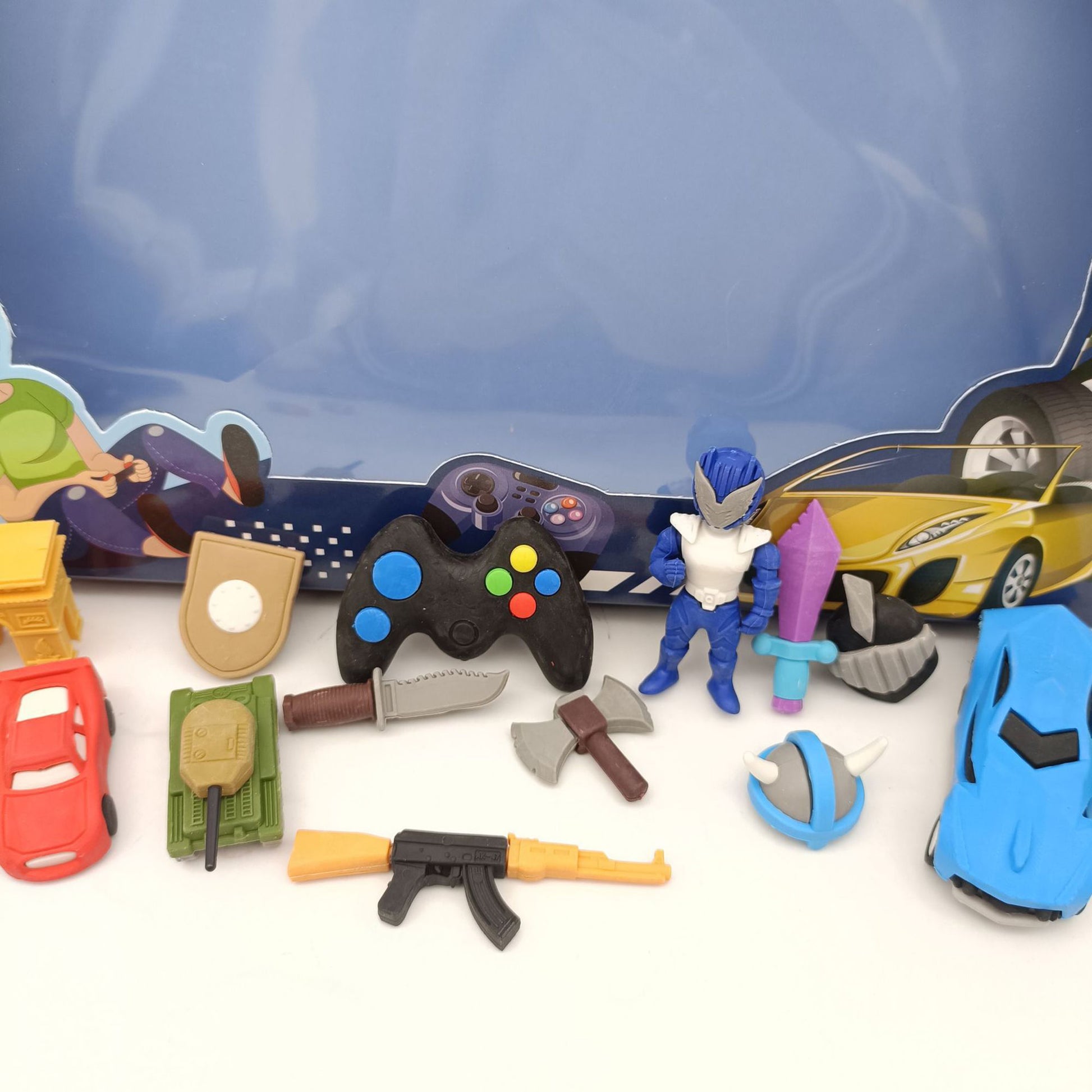 Game World Eraser Set – Big 3D Action Figure & Vehicle Stationery Kit