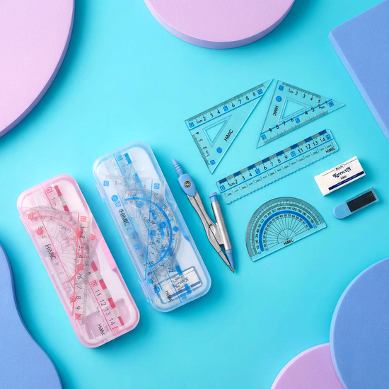 📏 Clear & Accurate Markings: All rulers and set squares are made of transparent plastic with clear, easy-to-read "HiMiC" branded metric markings for accuracy.