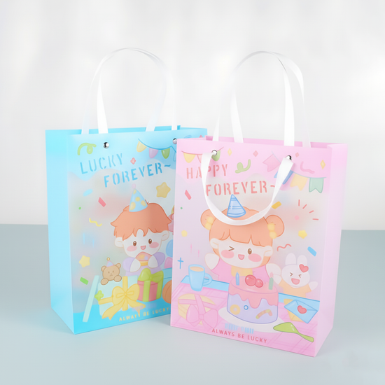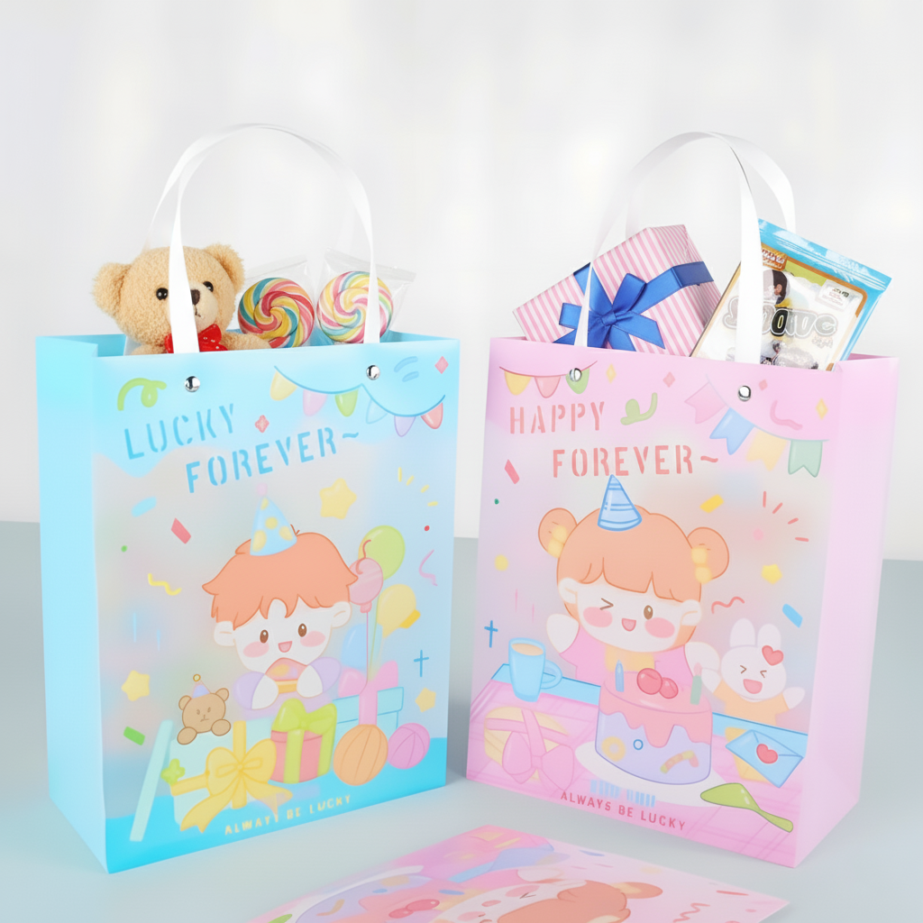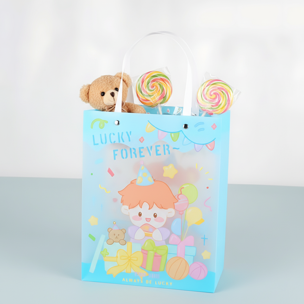 🎁✨ Brighten up every celebration with the Happy & Lucky PVC Gift Bags! Made from durable frosted PVC, these bags feature adorable birthday-themed cartoon prints that make gifting extra special. Spacious, reusable, and eco-friendly, they’re the perfect choice for birthdays, parties, or return gifts.