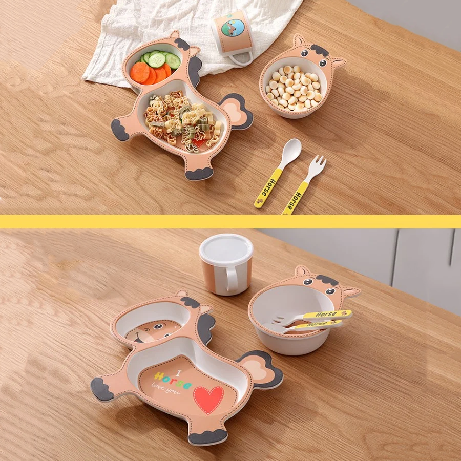 Horse Bamboo Fiber Kids Tableware Set of 5