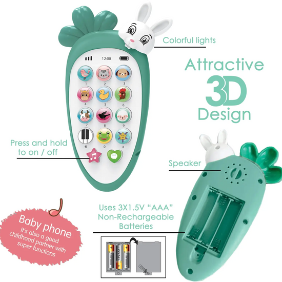- Package Includes: 1 x Intelligent Rabbit Carrot Phone (Baby Musical Mobile Toy)