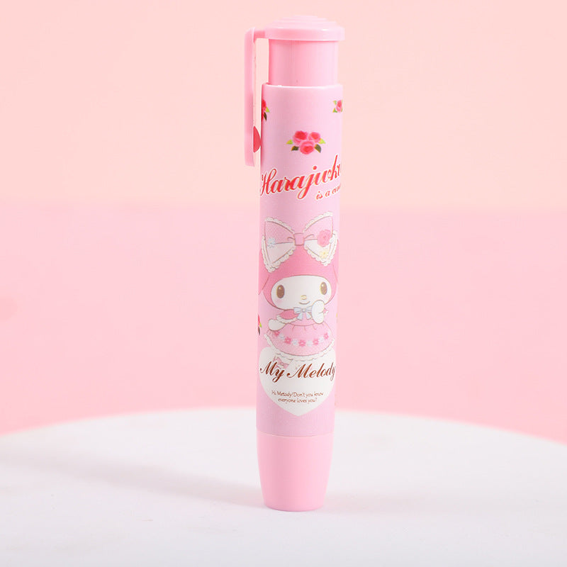 Make every correction a delight with our adorable Sanrio Character Twist-Up Erasers! these convenient pen-style erasers bring a touch of cuteness to your stationery collection. Perfect for school, art, or office, they offer clean erasing with irresistible charm!