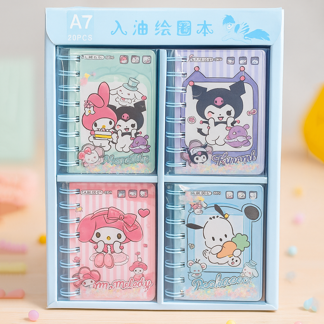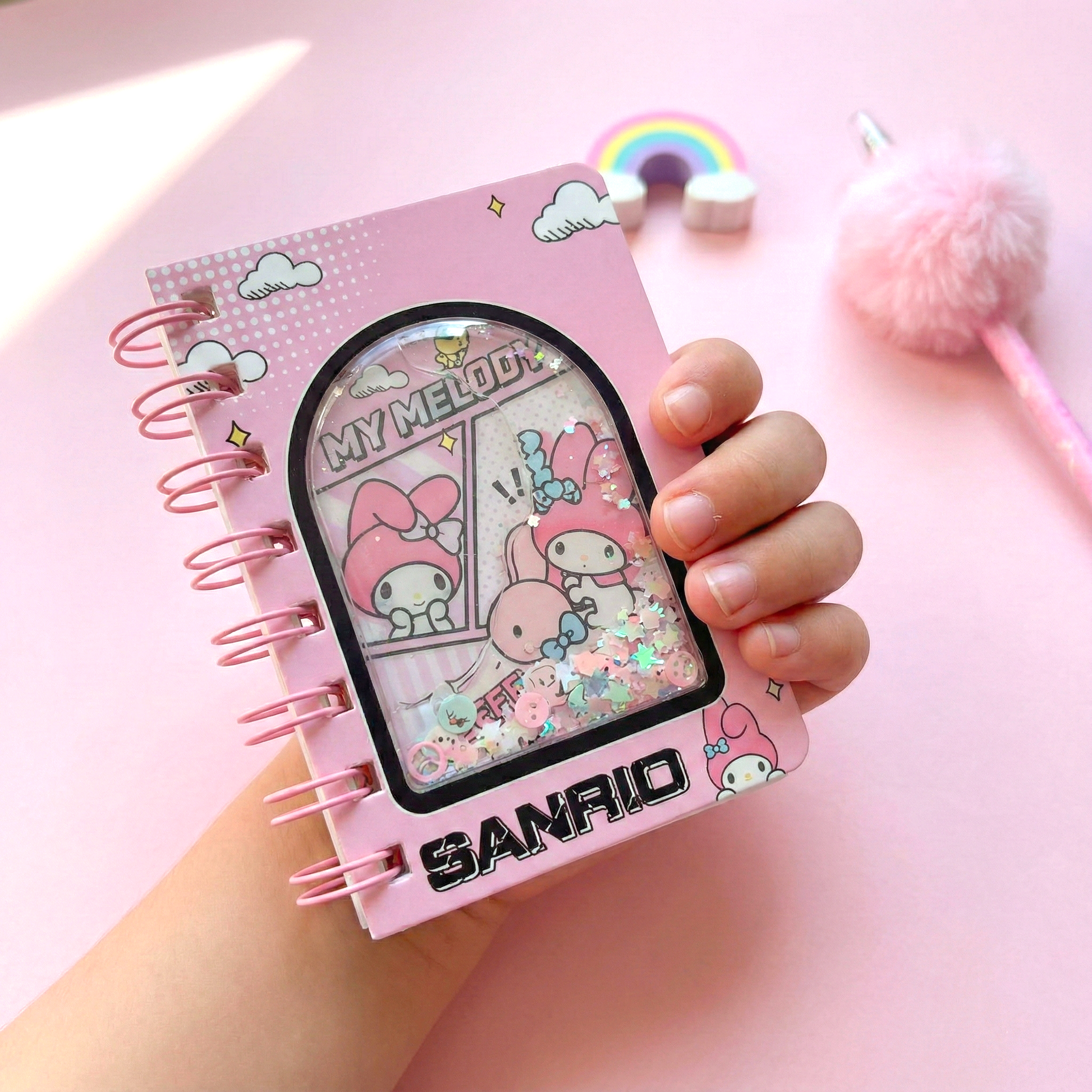 🌸 Kawaii Cartoon Water & Glitter Spiral Diary – Cute Mini Notebook for Kids & Teens