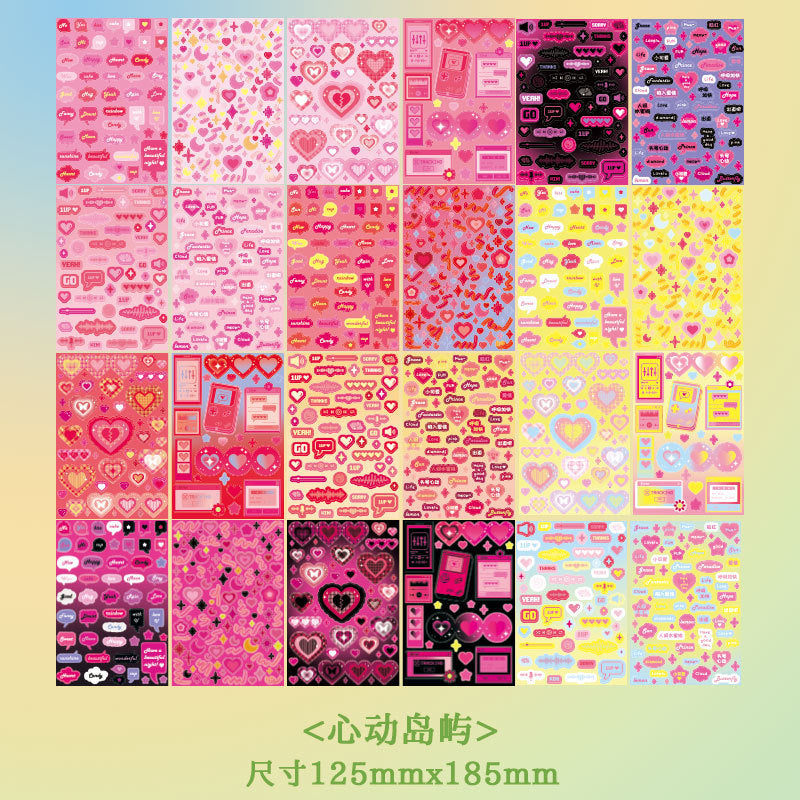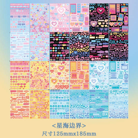 These magical sticker albums come in four dreamy designs — Moon Monsoon, Misty Secret Carnival, Star Sea Boundary, and Heartbeat Island — each with a beautiful gradient cover and holographic sparkle that shines like stardust.