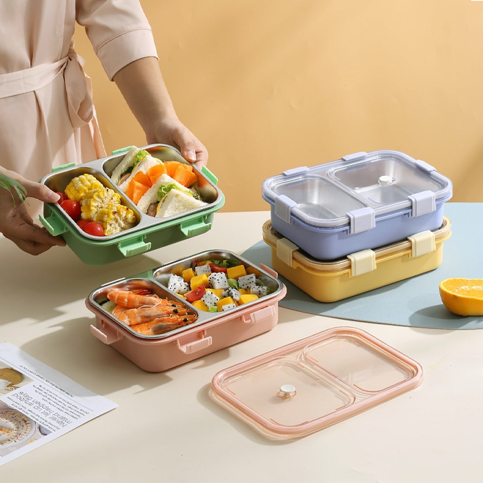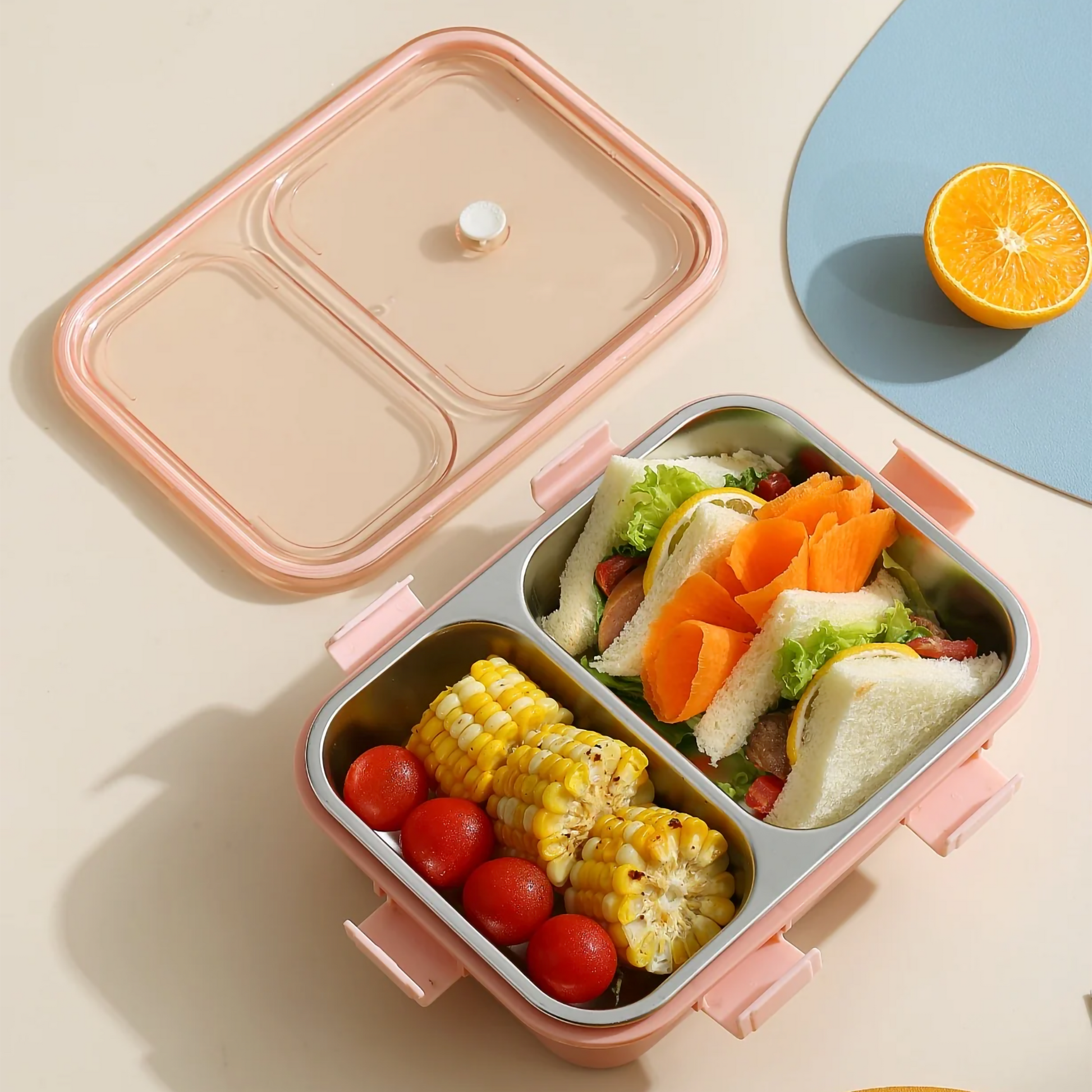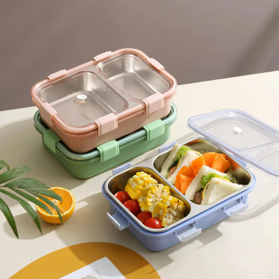 🥗 Food-Grade Stainless Steel Interior: Premium 2-compartment tray keeps meals neatly separated, fresh, and healthy.
